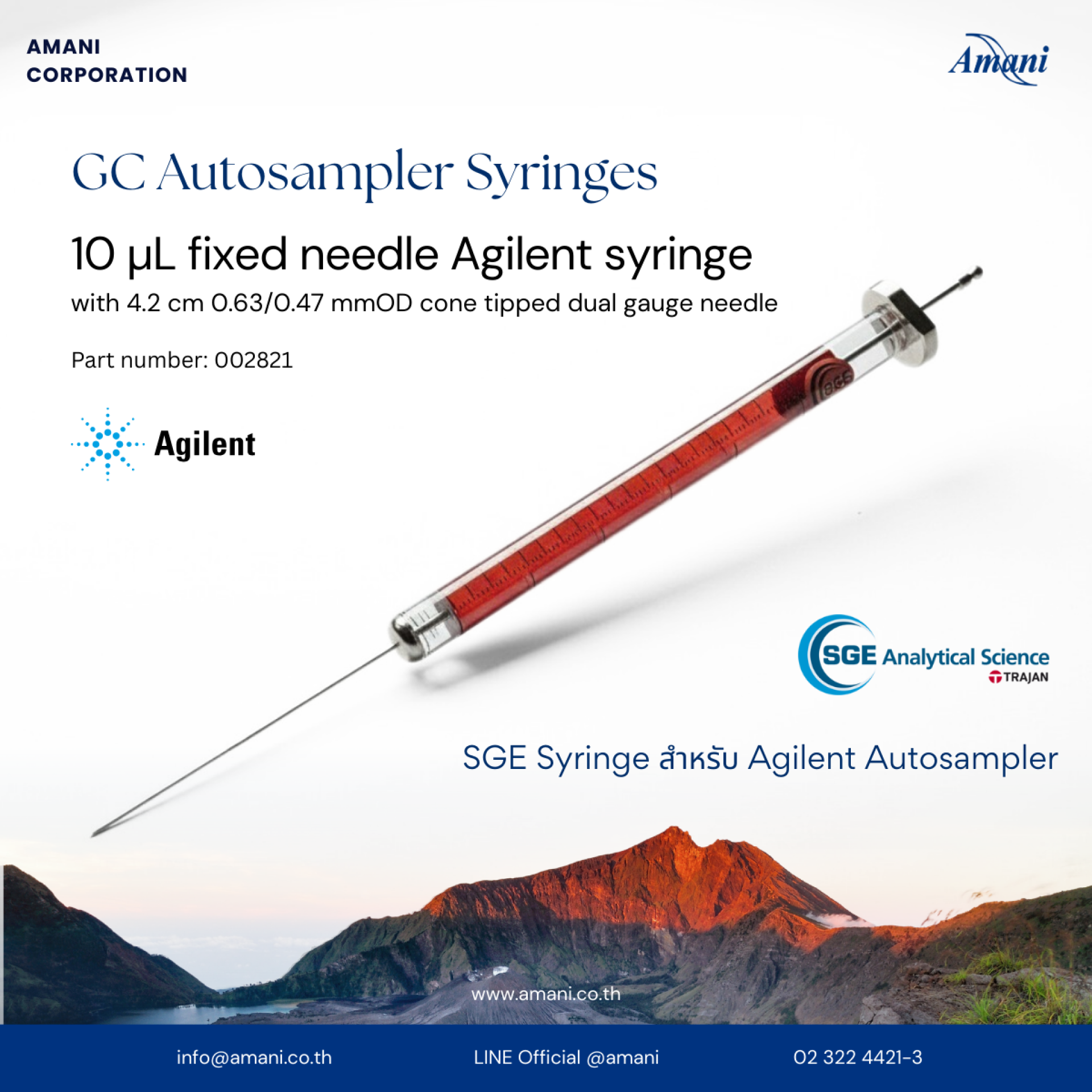 รายละเอียดสินค้า SGE GC Autosampler Syringe (Agilent)